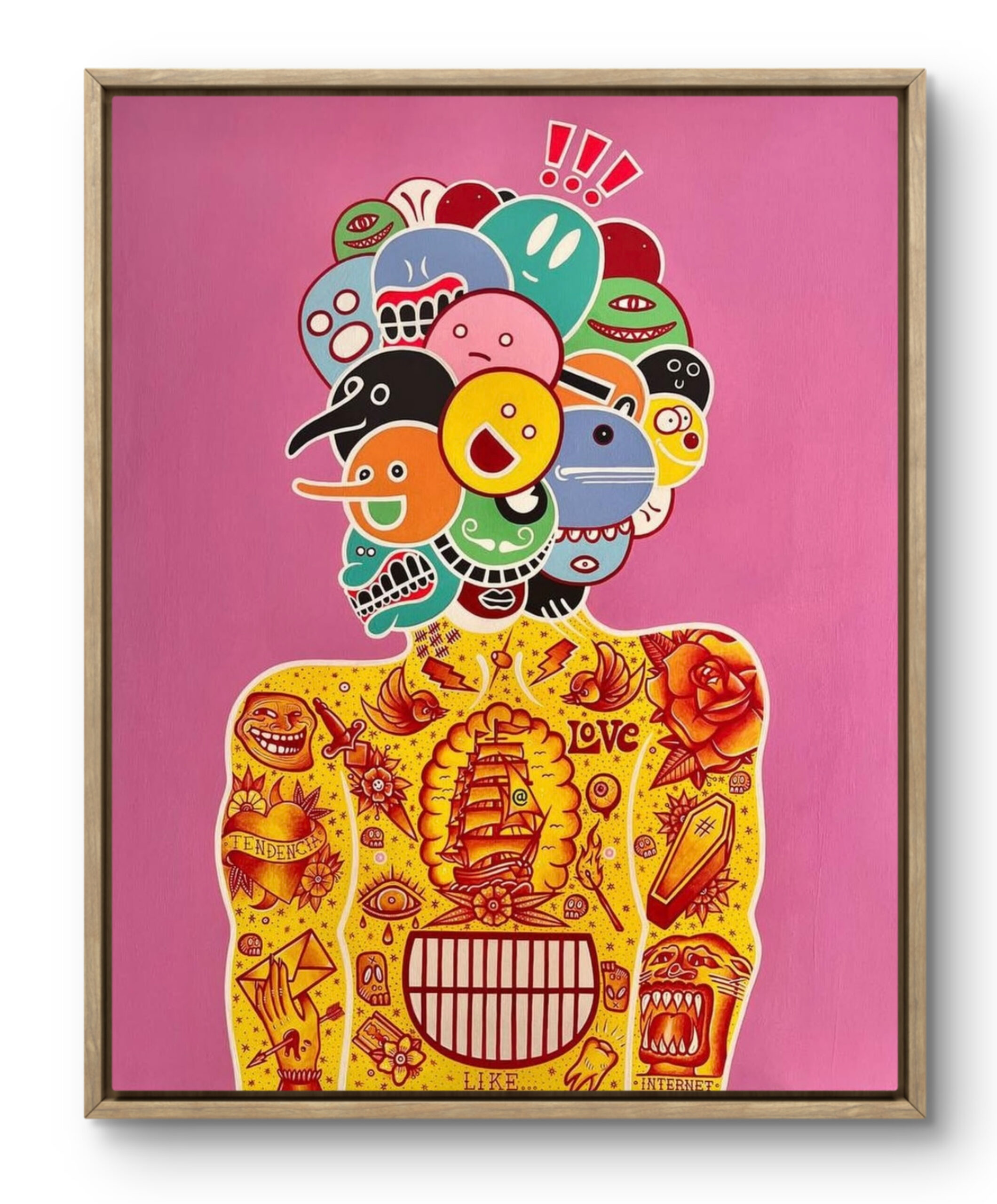 “En la obra de Karynga un sinfín de coloridos monstruos encapsulan las dinámicas y actitudes más representativas de la sociedad contemporánea, una sociedad alienada, estresada y rendida a la incertidumbre. A través de sus obras, hace tangible cualquier emoción mediante el color y las formas, normalmente tensas y retorcidas, mostrando una dicotomía constante entre la angustia y la calma.”