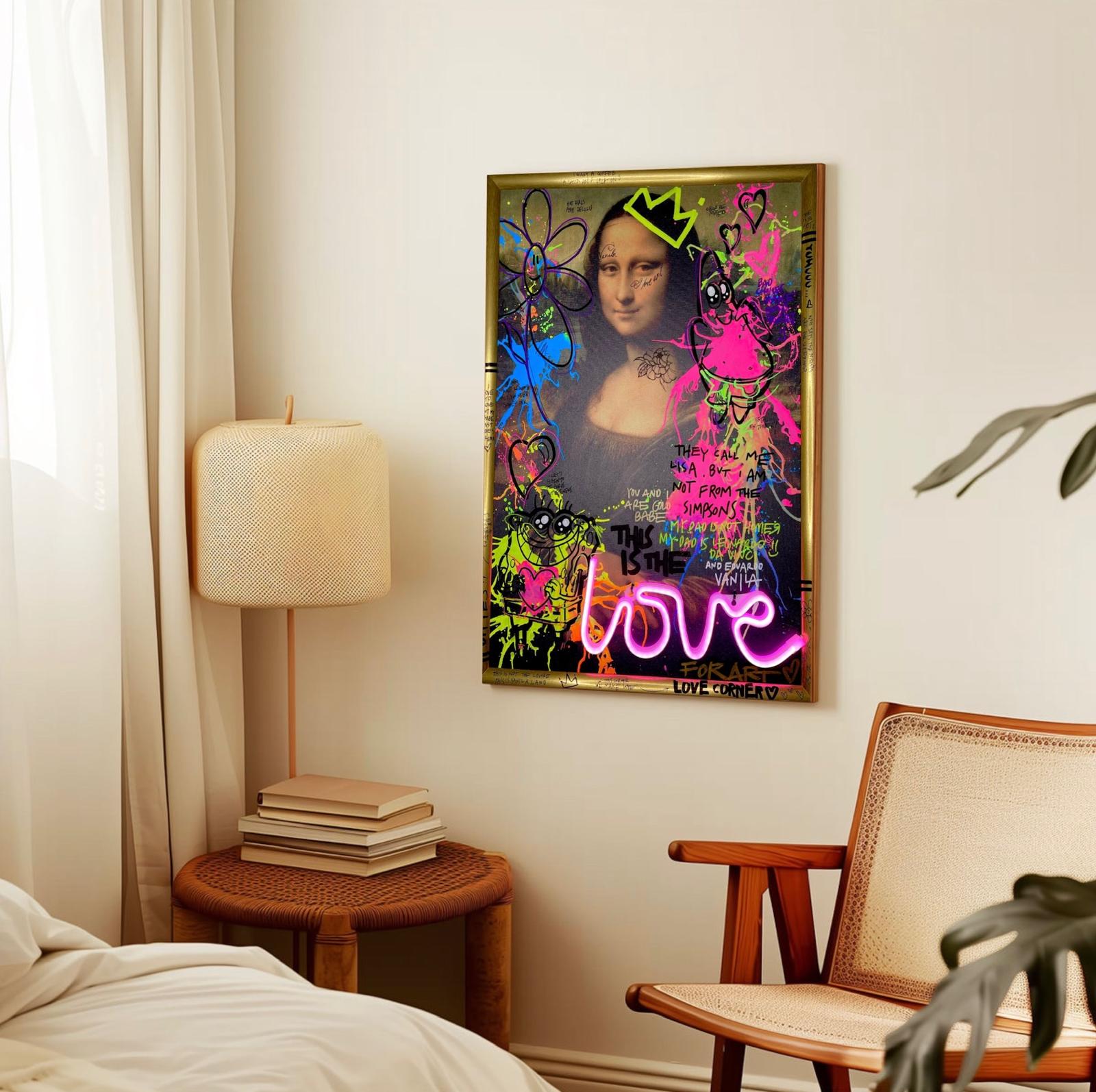 En esta obra, Edu Vanila reinterpreta un icono universal de la historia del arte desde una mirada urbana, irreverente y profundamente contemporánea. La pieza combina técnica mixta con intervención pictórica y gráfica, incorporando luz integrada que transforma la obra en una experiencia visual viva y cambiante.