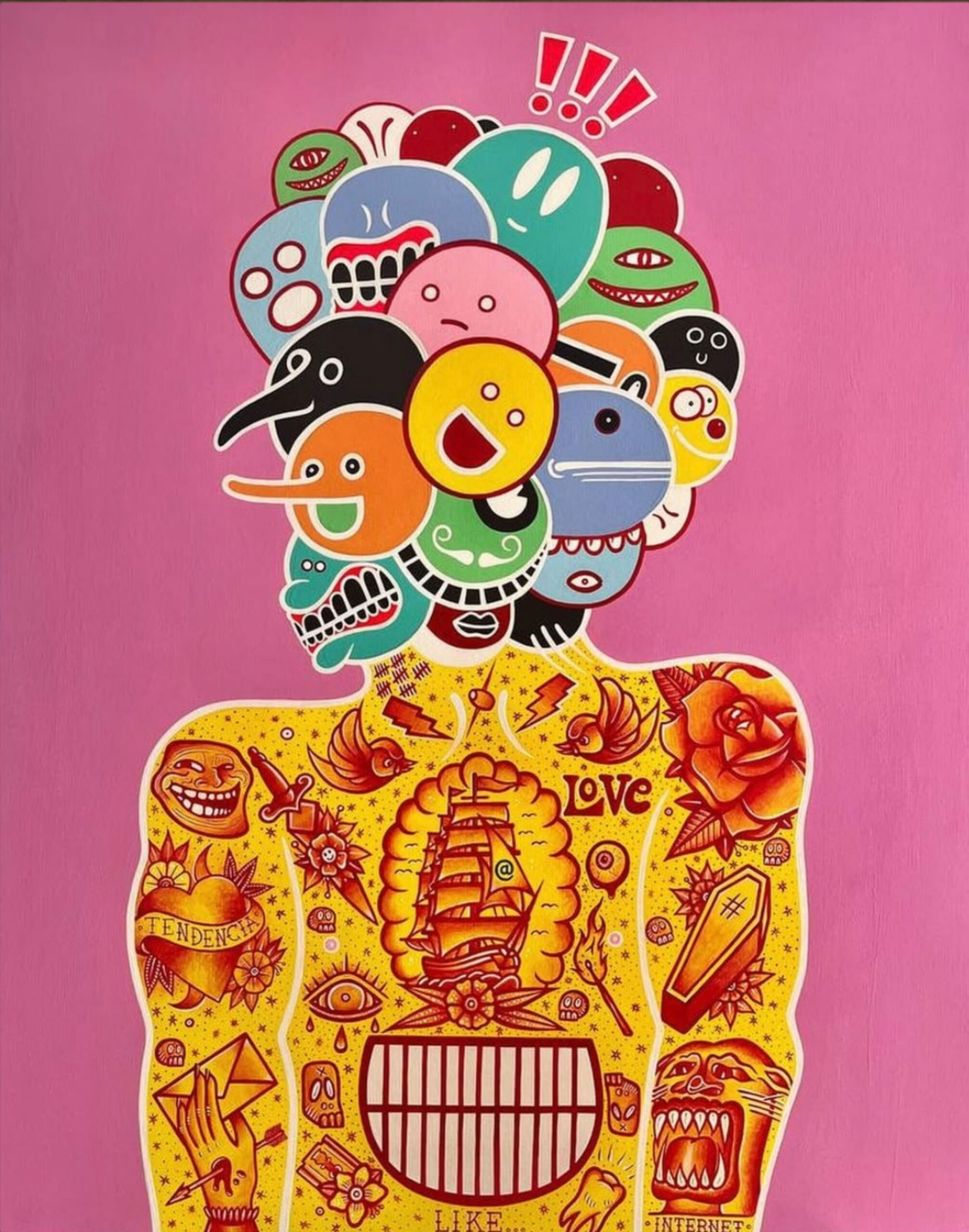 Su visión canalla, víctima de su tiempo crean unas texturas únicas, el pixel, el neón, el branding con técnica sutil y refinada, rozando el preciosismo, lejos de lo superfluo, visceral, subcultura, street art y graffiti.